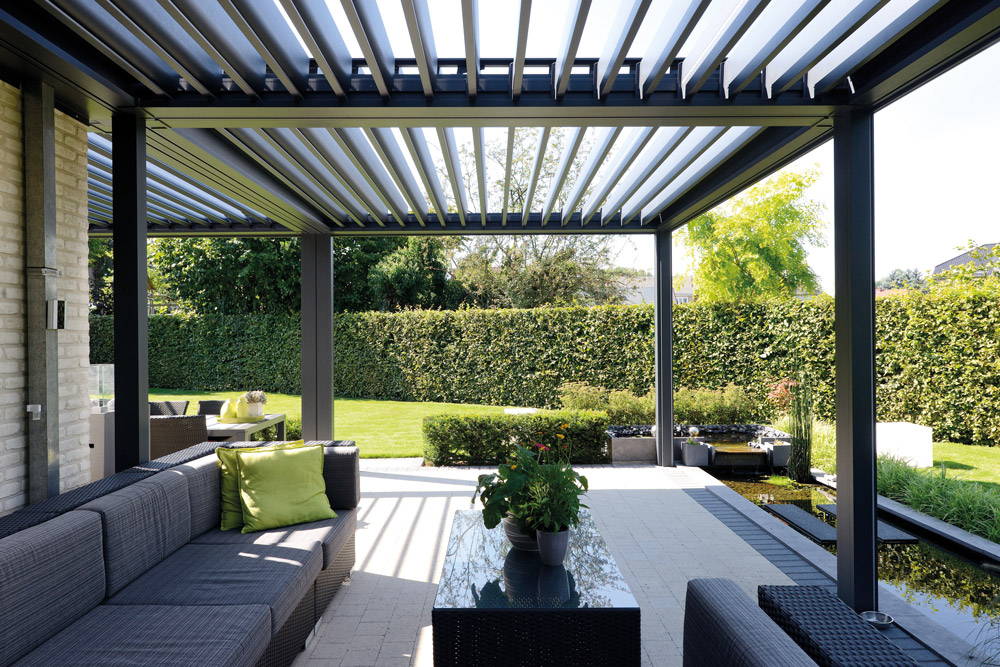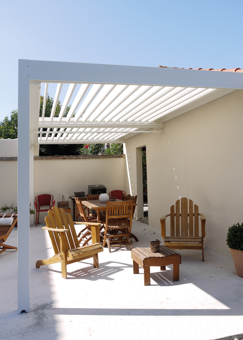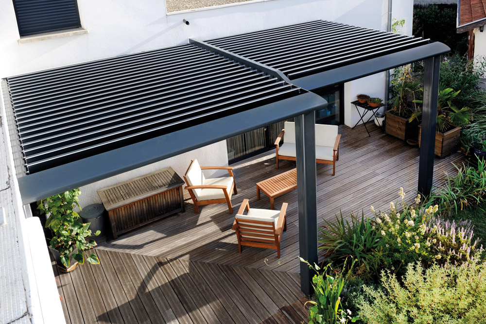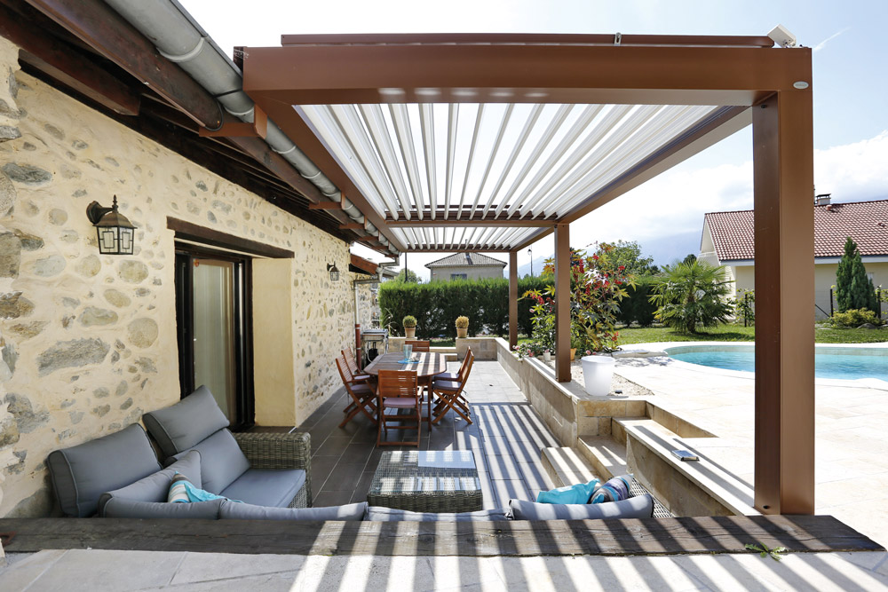 Pergola bioclimatique réalisée par Garrigues Habitat.