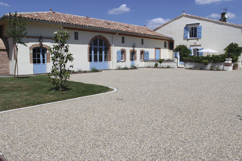 Dès l’achat du domaine en 2011, le couple entreprend des travaux de rénovation. Après la transformation des bâtiments, vient l’aménagement des cheminements. Las de la boue, las de sulfater les mauvaises herbes qui repoussent sans cesse, Christophe se tourne vers un spécialiste en aménagement d’allées, cours et terrasses.