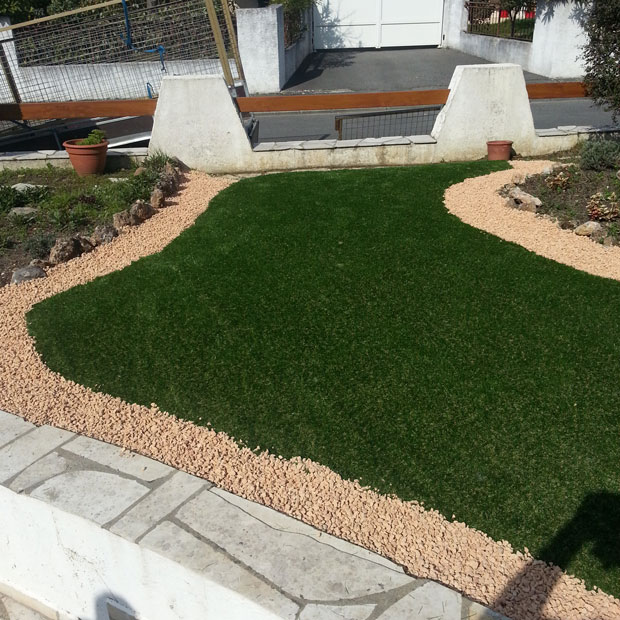 Un gazon toujours vert, c’est possible. Sans mauvaises herbes, sans entretien. Voici le gazon synthétique. Fabrice Mariou de Naturéa en a posé à Toulouse, pour le plus grand bonheur de sa cliente. Le jardin de sa cliente, tel qu’il l’a trouvé lorsqu’elle l’a contacté. Du gazon naturel avait déjà été semé par une autre société,