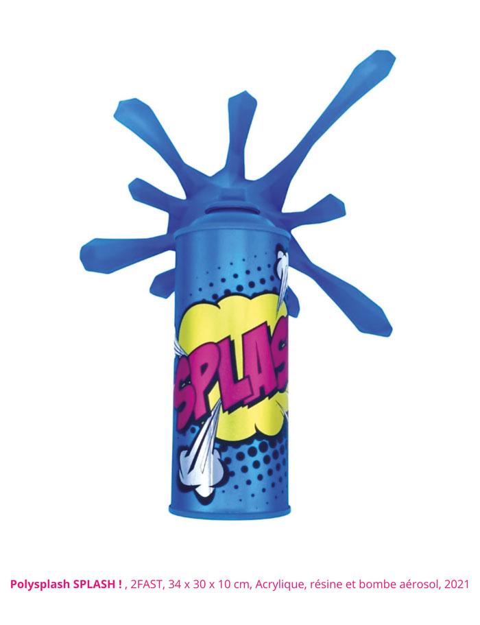 2FAST Artopic Gallery art3f toulouse 2Fast, Polysplash !, acrylique, résine et bombe aérosol, 34x30x10cm, 2021. 2FAST, artiste croate, prend part à de nombreuses expositions nationales et internationales. Les Splash-it sont l’expression innovante et explosive du Street Art tridimensionnel imaginé par l’artiste.