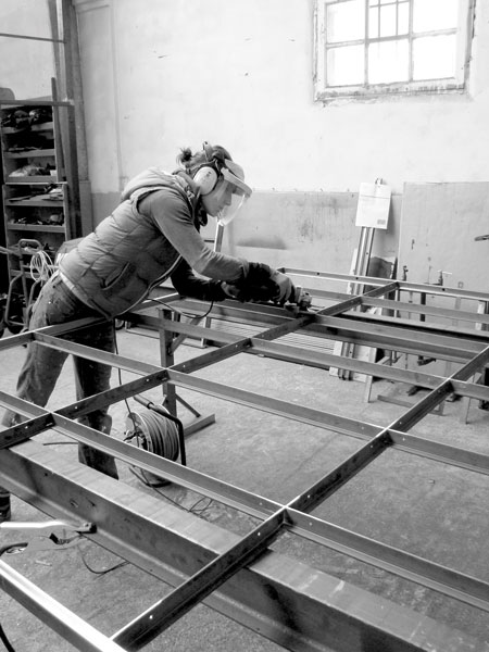 Une métallerie en plein Toulouse, quartier Marengo. Dans une ancienne usine de fabrication de chaussures, postes à souder, cintreuse, rouleuses, cisaille et plasma équipent l’atelier de Camille Bertrou. Sa société, Camille B Création, vient de fêter ses 11 ans. Son matériau de prédilection : l’acier.