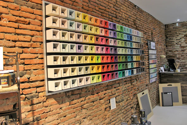 « Je suis une amoureuse de la couleur », revendique Christine Gourdon, gérante de la boutique Effet & Nuance, située en plein cœur de Toulouse, rue du Canard. Mur en brique et plancher peint en blanc, Effet & Nuance est le seul endroit de tout Midi-Pyrénées où vous trouverez la marque de peinture Little Shop of Colors, réputée pour ses milliers de couleurs aux teintes intenses. L’échantillon présent dans la boutique donne déjà envie de tout repeindre chez soi, et même d’aller repeindre chez les voisins. « Little Shop of Colors est une peinture haut de gamme, made in France. Elle contient très peu de COV (composés organiques volatils). Facile d’application, elle est très souple à étirer, très couvrante et a un bon rendement. Ce sont des teintes non diluées à base de pigments naturels. Leurs mises en œuvre sont toujours aisées même pour des non professionnels. » Après une vingtaine d’années dans le bâtiment, Christine Gourdon a posé ses valises à Toulouse et créé la boutique Effet & Nuance. « Ma féminité a repris le dessus. J’ai voulu mêler décoration intérieure et qualité des produits. » C’est pourquoi elle a sélectionné des marques, avec toutes un petit plus qui fait de grandes différences. Effet & Nuance commercialise aussi le béton ciré sans résine époxy de Little Shop of Colors, très facile à appliquer, teinté sur-mesure, doté d’une élasticité qui évite tout problème de microfissurage. Parmi ses revêtements de sols et de murs, laissez-vous surprendre par ses dalles vinyles, son parquet contrecollé en chêne aux lames larges (jusqu’à 45 cm) et immensément longues (jusqu’à 4,50 m), ses mosaïques ultra faciles à poser grâce à un film adhésif au dos de la plaque, ou encore ses panneaux décoratifs imitant la pierre ou la brique… à s’y méprendre.