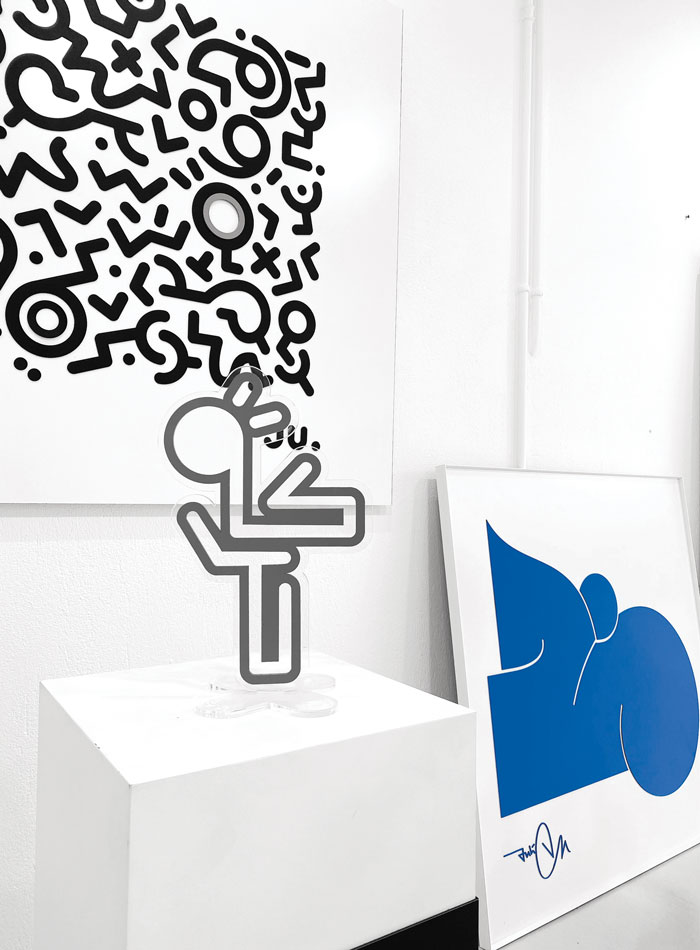 En parallèle, l’étudiant travaille dans la publicité et suit des formations en graphisme et décoration d’intérieur. De 2012 à 2018, il travaille à Genève dans une fondation culturelle, à l’organisation des expositions et des ateliers de calligraphie. Son style est la synthèse de son parcours. On y retrouve l’influence du graffiti (notamment du flop), les supports et techniques de la publicité (plexiglas, aluminium, pvc) et le minimalisme de l’architecture et du design. Son travail s’effectue sur papier, aux marqueurs de peinture et sur logiciel vectoriel pour réaliser des sérigraphies, gaufrages, découpes et gravures en nombre limité. Le designer aime utiliser les contrastes, les transparences et l’assemblage de matières telles que le verre acrylique, le carton, la feutrine, etc. qu’il peint ou laisse brut. Chacune de ses réalisations est composée de mots ou phrases en arabe qu’il modèle et assemble. En attendant de le retrouver au salon art3f, découvrez ses œuvres exposées chez Cerezo (Portet-sur-Garonne).