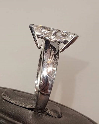 Bague en or blanc 4,5 grammes avec un diamant taille navette de 2 carats.