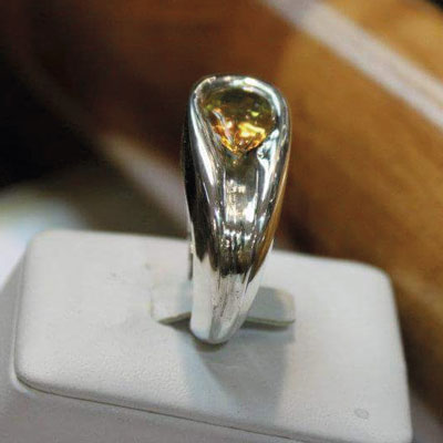 Bague en argent 8 grammes et citrine taille poire.