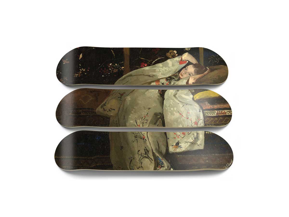 Au cours de l’un d’eux, l’idée d’utiliser des planches de skateboard comme objet de décoration est une révélation pour Lili. Non seulement elle s’en sert pour donner une nouvelle lecture de ses propres clichés, mais elle décide également d’utiliser ce support pour faire revivre des grands classiques de l’art comme La Cène de Juan de Juanès ou encore La Grande Vague de Kanagawa d’Hokusai, sur un support beaucoup plus contemporain et urbain. Dans ce contexte, elle a vendu ses œuvres aux États-Unis, à Singapour et à Hong-Kong. « Ma vision, ici, est de sortir ces œuvres d’art de leur contexte, leur redonner vie autrement. » Le choix de la planche de skateboard offre ainsi une occasion inhabituelle et déroutante de redécouvrir ces images emblématiques. La mise en scène d’une image sur un diptyque ou un triptyque propose un nouveau rythme et modifie la profondeur de champ. Cet objet détourné devient alors une véritable décoration d’intérieur.