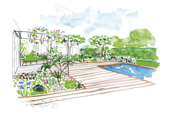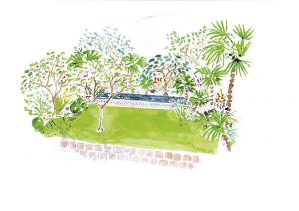 En 2012 elle crée son bureau d’étude en paysagisme et met ses convictions en pratique : respecter les sols, opter pour le zéro pesticide, économiser l’eau, privilégier les plantes adaptées à notre région et les circuits courts. Évidemment ses clients sont libres de désirer une pelouse verte l’été, mais elle leur suggère toujours une expérience plus écologique. Ses clients, essentiellement des particuliers, la sollicitent pour des balcons, des terrasses aux ambiances moins urbaines, des jardins aux floraisons toutes blanches, des parcs aux végétaux des collections australes, etc. Quoi qu’il en soit, les jardins de Sophie Lauret naissent toujours sur des aquarelles. Avec ses pinceaux, la paysagiste projette le jardin à différentes saisons et dans le temps. « Mes clients apprécient cette phase de travail. » Pour l’implantation, elle travaille avec un réseau d’artisans aguerris aux bonnes pratiques.