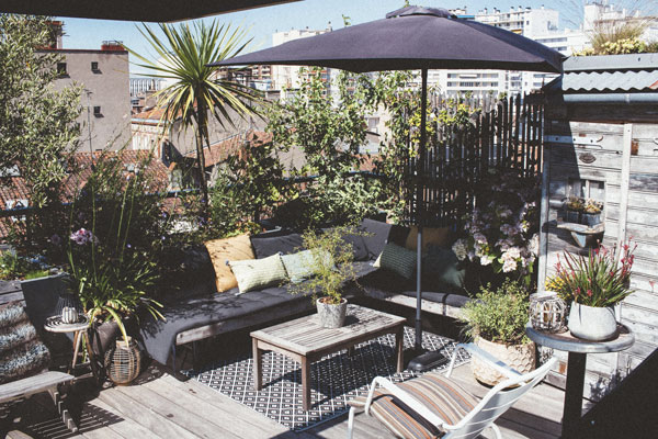 En plein centre de Toulouse, Sophie Lauret a transformé cette terrasse entourée d'immeuble en un espace extérieur verdoyant propice à la détente.