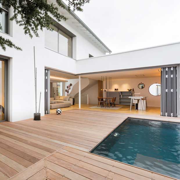 Une maison de béton et de verre, « chaleureuse et stimulante » pour ses propriétaires, signée par l’agence d’architecture Ar-Quo, dont on entend très souvent parler sur la région… en très bien.