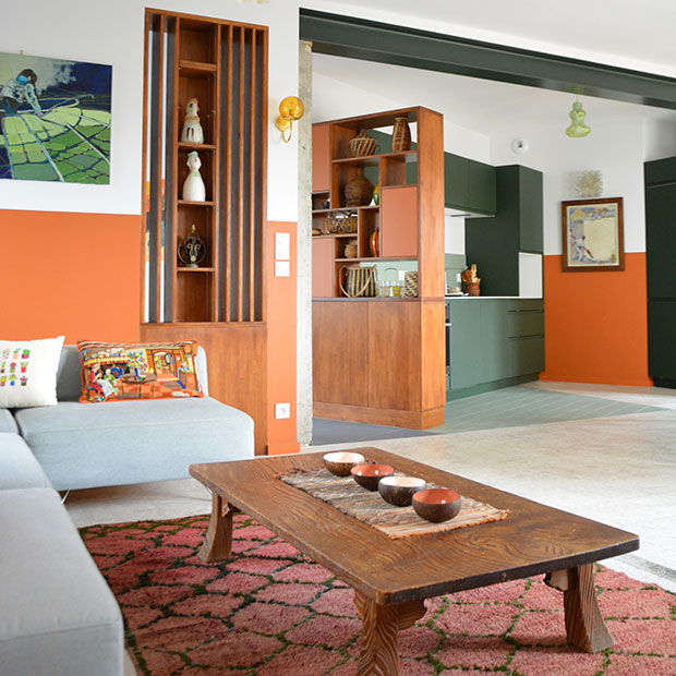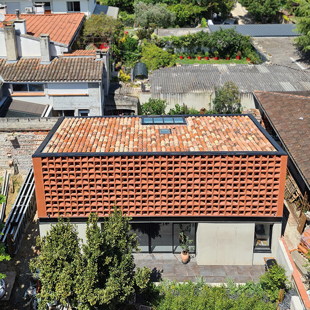 Bâtie en grande partie en auto-construction et inspirée des voyages aux quatre coins du monde, la Maison Toscane offre un cadre de vie paisible dans la campagne de Cordes-sur-Ciel. LA RÉDACTION – PHOTOS SOLÈNE DOUX La cuisine revêt un enduit de douceur. Sa structure est en grande partie réalisée en béton cellulaire. Plan de travail