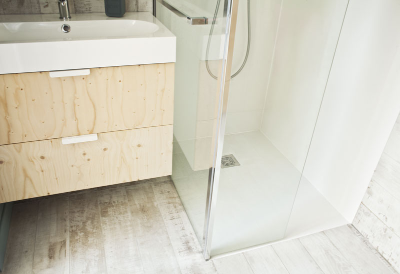 Pour l’étage le client lui a donné carte blanche, il voulait quelque chose hors du commun. « J’y ai passé quelques nuits, se souvient Aurélie, avant de leur imaginer cette mezzanine un peu cabane. L’idée, c’est d’avoir une unité sol-cloison en contreplaqué. Ce matériau a aussi l’avantage d’apporter de la chaleur et de la légèreté. La cabane n’est pas oppressante au dessus de l’escalier. » Le menuisier a donc conçu un meuble-lit en contreplaqué, séparé de l’escalier par une verrière. Le sol est en dalles de contreplaqué de 120 x 120 cm, posées bord à bord. « Le menuisier a fait un très beau travail pour un résultat parfaitement réussi », se réjouit Aurélie. Une réussite, c’est aussi ce que pensent les propriétaires, qui ne regrettent pas de ne pas avoir raboter le jardin pour agrandir la maison.