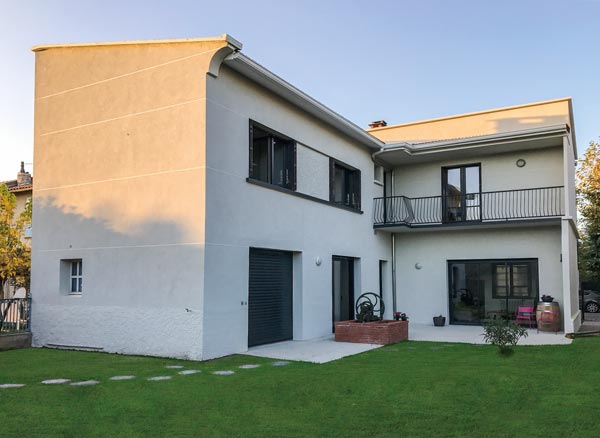 Les propriétaires ne veulent pas d’un crépi classique. Ils craignent qu’il ne vieillisse mal : apparition de mousses et moisissures sous 10 ans et réapparition des fissures à terme. Étant donné le coût d’un ravalement, ils veulent être sûrs qu’il va durer dans le temps. La solution proposée par Espace Façades retient leur attention. Depuis 1995, cette entreprise toulousaine, réalise une cinquantaine de chantiers par an. Garantie décennale à l’appui, elle est applicateur exclusif des produits Vertikal sur la Haute-Garonne. Cette marque française de revêtements extérieurs à base de résines est exclusivement destinée au ravalement et à la rénovation de façades des maisons individuelles ou autres types de bâtiments.