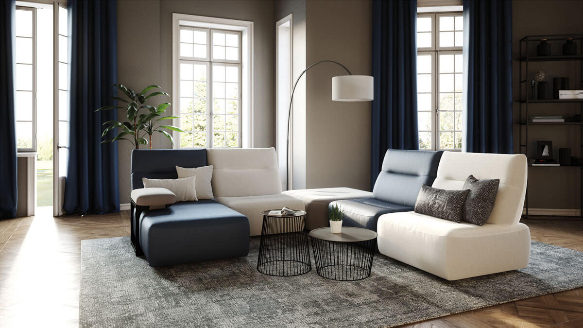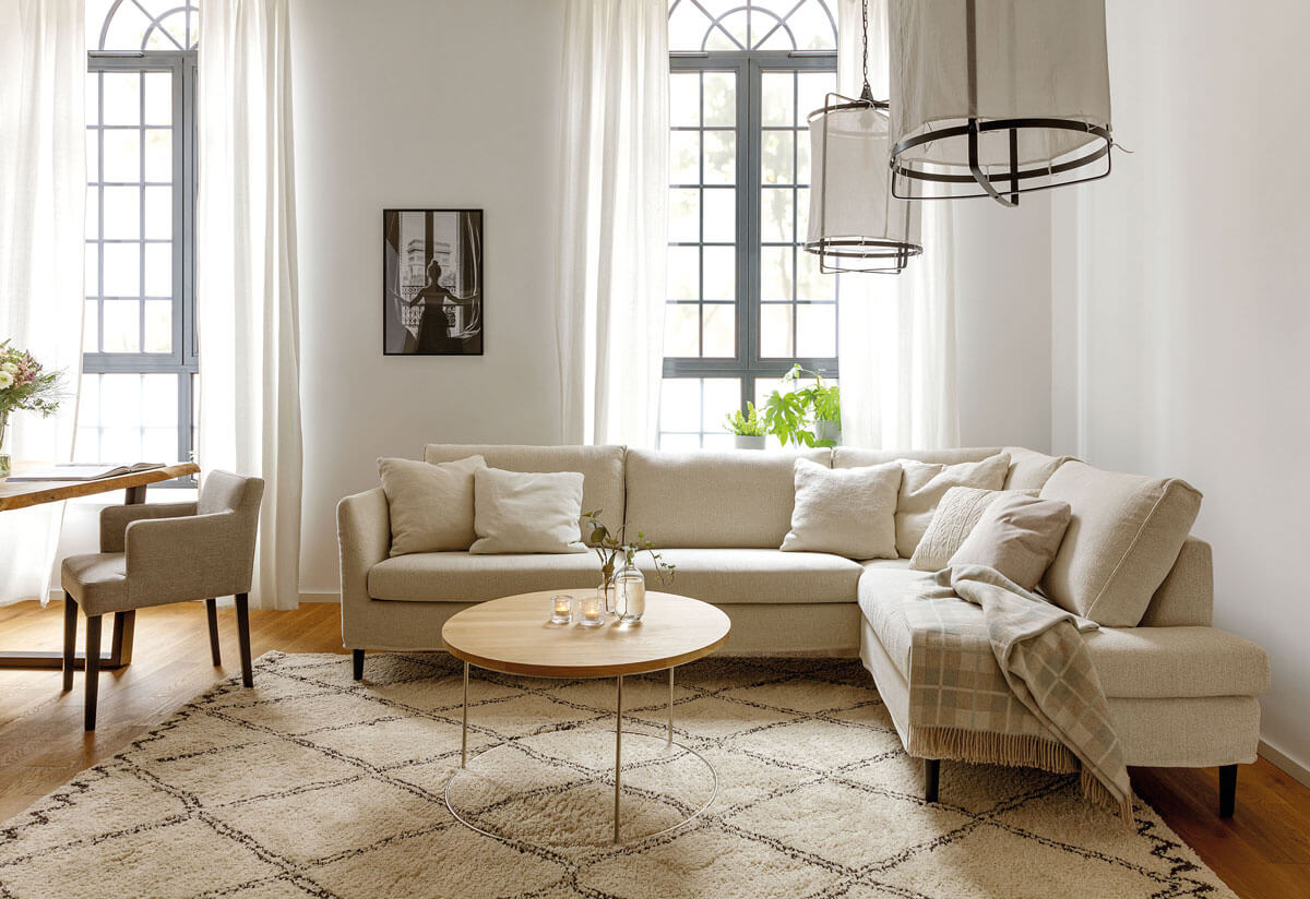 Le canapé d’angle Napels est relaxant. Sa forme en « U » permettra de longues discussions en duo à la romaine. À partir de 2 797€.
