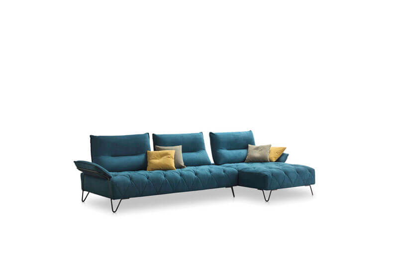 Le canapé Emerald d’Aerre Italia dispose de dossiers à mécanique « avant-arrière » qui permettent une double profondeur d’assise. Les pieds au design élancé expriment une grande légèreté. À partir 3 606€ en angle dans la plus petite dimension L.292xP.160xH.95cm.