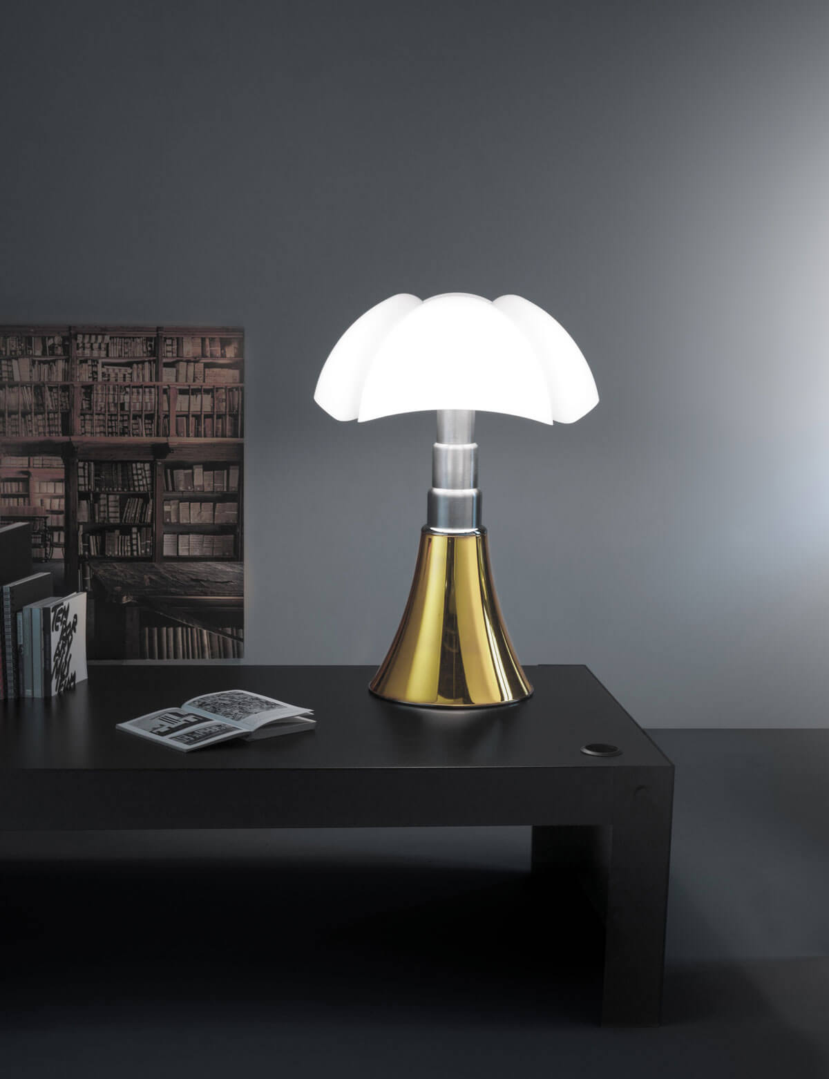 Designée en 1977 par Vico Magistretti, Atollo est devenue au fil des années l’archétype de la lampe de table. Indémodable. Disponible en trois tailles différentes et en différentes finitions: blanc, noir, bronze satiné ou métal or satiné. À partir de 799€.